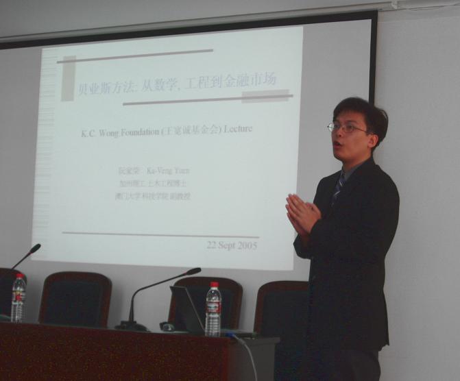 Kelvin Yuen副教授,在美国加州理工学院获得博士学位,现为国际性杂志《安全与可靠性》编委,美国土木工程师协会动力学委员会委员、美国土木工程师协会概率论委员会委员、结构工程随机方法委员会委员、关于数学、机械、物理的新型交叉技术的中国财政评估和分析委员会委员。Kelvin Yuen副教授的研究方向包括系统辨别、结构健康监测、工程与金融系统的可靠性分析,结构控制、空气质量预测等等。他在美国土木工程师协会《工程力学》、美国机械工程师协会《应用力学》、美国机械工程师协会《动力系统、测量与控制》、美国航空航天学院的《AIAA》杂志等国际性杂志及会议上发表了50余篇论文,10余家国际性杂志的编委。