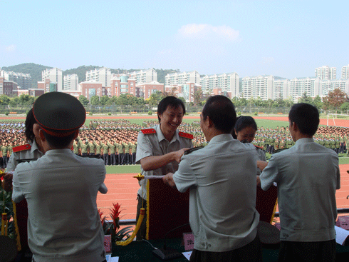 2、在9月23日的军训成果表彰大会上,我院被评为内务卫生先进单位,由我院女生组成的女生徒手方队获阅兵队列优胜奖,并有16人获得了军训先进个人的通报表彰,先进个人名单如下:赵青、叶斌、王梓霖、赵俊凯、李福东、姚恺、蒋祺、宋阳、沈龙腾、苏思一、张慧、郑海艳、李明、田晓、吴真杰、张鹏。