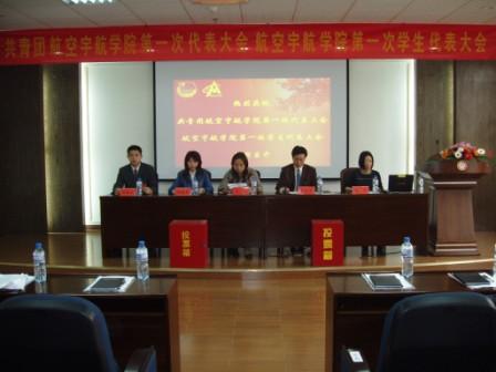 2007年3月31日上午,共青团航空宇航学院第一次代表大会、航空宇航学院第一次学生代表大会在明故宫校区航空宇航学院18号楼会议室隆重举行。校团委书记王晖、院党委副书记袁智强等领导出席了会议并作重要讲话。参加本次会议的还有学院各级辅导员以及161名03、04、05、06级本科生以及研究生代表团成员。院团委副书记任盈盈主持了会议。