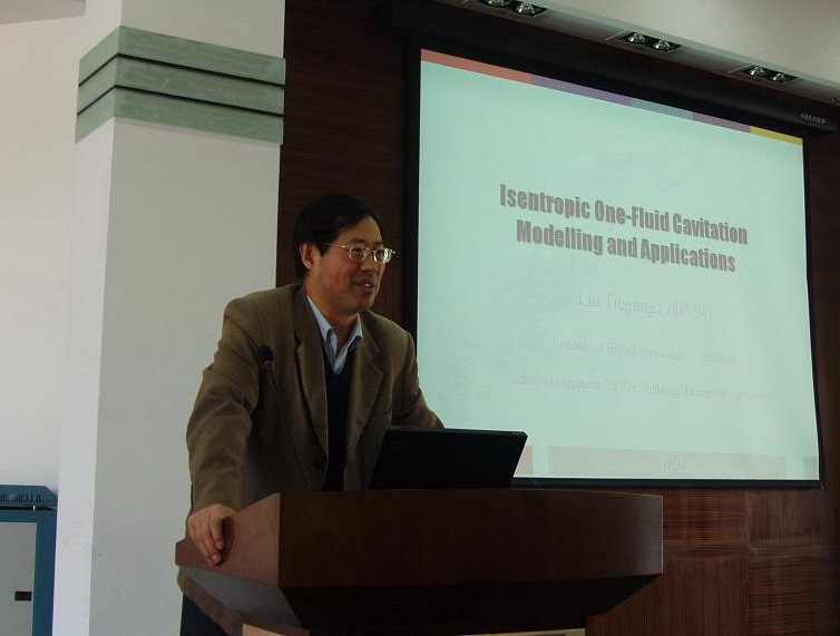 2007年4月16日上午,在流体力学楼学术报告厅,新加坡国立大学高性能计算研究所刘铁钢博士,为我院师生作了题为“Isentropic/Isothermal One-Fluid Cavitation Modeling and Applications”的学术报告。报告内容新颖、丰富、生动。航空宇航学院科研副院长赵宁教授主持了报告会,近五十余名师生参加了报告会。