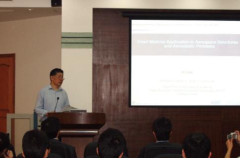2007年5月25日上午,在流体力学楼学术报告厅,韩国航空宇宙学会会长、韩国高等科学与技术学院(Korea Advanced Institute of Science and Technology)李仁教授(Professor In Lee),为我院师生,作了题为“Smart Materials for the Shape Configuration and Vibration Control of Aerospace Structures(航天结构外形和振动控制中的智能材料)”的精彩的学术报告,结构强度研究所王鑫伟教授主持了报告会,近50余名师生参加了报告会。