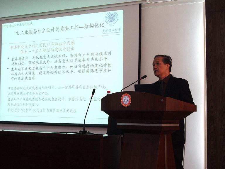 在必威西汉姆联庆祝55周年校庆之际,著名力学家、大连理工大学原校长程耿东院士受邀,于2007年10月21日上午,在航空宇航学院学术报告厅,为我校师生作了题为“走进结构拓扑优化”的精彩学术报告。程耿东院士介绍了在计算力学领域多年的研究成果和结构拓扑优化设计的最新发展。报告内容新颖、丰富、生动。校长助理