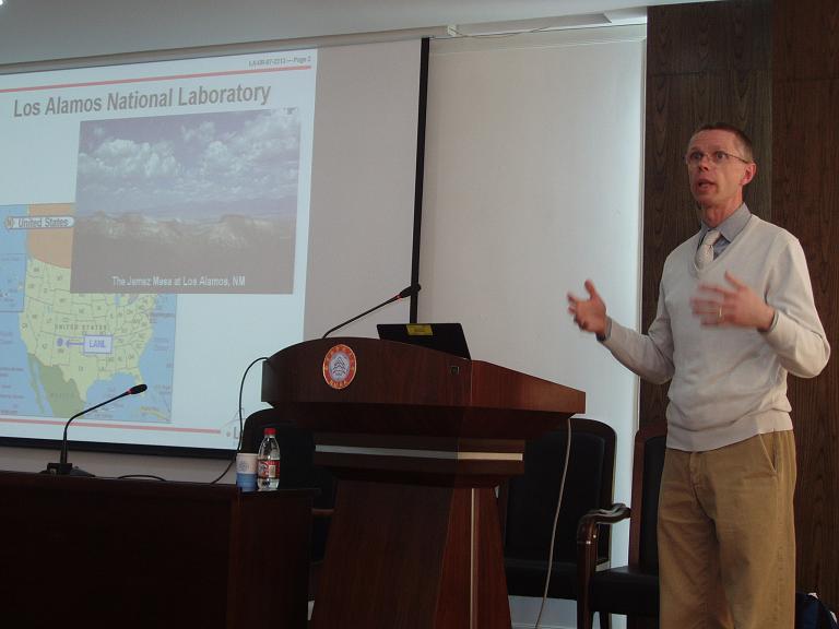 在我校访问期间,François Hemez博士还与与航空宇航学院及机电学院的部分教师和研究生进行了学术座谈。双方还就今后学术合作的可行性进行了探讨,并各自表达了愿意深入交流合作的意愿,其中包括Hemez博士再次来访,并在复杂结构动力学计算仿真,不确定性量化,以及模型确认等方面进行合作研究,并协助指导研究我校研究生。