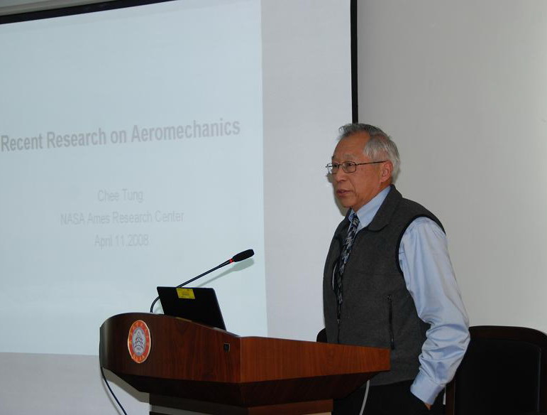 Chee Tung博士是国际著名的直升机技术专家,于1966年获美国New York University博士学位,1976年至1979年任职于美国Brookhaven 国家实验室,1979年以来任职于美国NASA Ames研究中心。1995年及2006年两次获美国陆军U.S. Army R&D Award奖,2004年获美国直升机学会AHS Howard Hughes Award奖,1990-1993年担任国际直升机最高杂志《Journal of the American Helicopter Society》副主编,在直升机领域已发表100多篇学术论文。