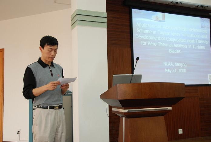 2008年5月21日下午,在流体力学楼学术报告厅,薛庆栾博士为我校师生作了题为“Application of Adaptive Mesh Refinement Scheme in Engine Spray Simulations and Development of Conjugated Heat Transfer for Aero-Thermal Analysis in Turbine Blades”的学术报告。报告介绍了多相流计算的发展方向,特别强调了气动燃烧过程的CFD模拟和气固耦合计算的应用,通过几个工程应用的例子,薛博士阐述了燃烧喷油过程模拟的重要性和相关问题,特别讲解了适应性网格计算加速工程设计的意义,引起了与会师生的浓厚兴趣,师生们就某些问题与薛博士进行了热烈的讨论。报告的内容是薛博士研究小组的最新成果,将对我校该领域的研究起到推动和借鉴作用。