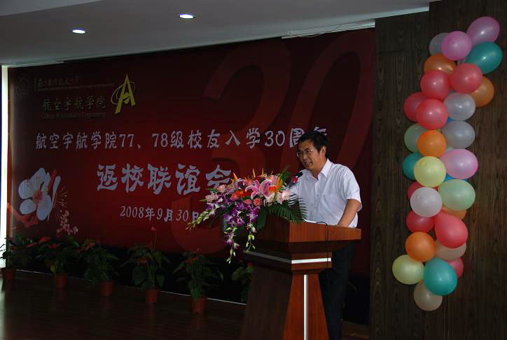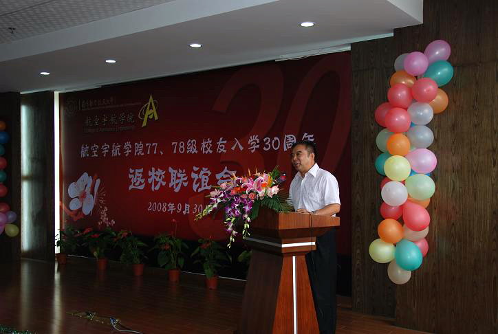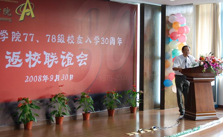 在改革开放30周年及必威西汉姆联庆祝56周年校庆之际,由航空宇航学院组织的航空宇航学院77、78级校友入学30周年返校联谊会,于