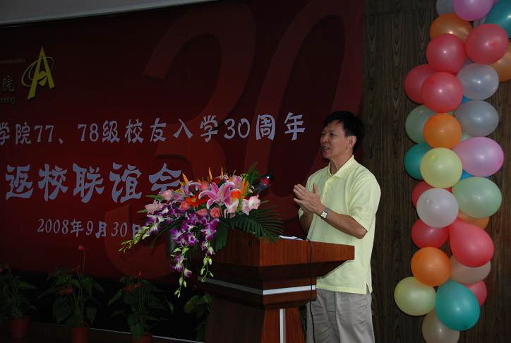 77、78级辅导员许存喜、王中银、陈永坚和班主任代表孙玉君老师,以及任课教师代表杨�生老师、林肖芬老师、余勤芳老师、祁延爽老师等分别发言。他们回忆当年77、78级校友的刻苦学习,褒扬他们的业绩,并嘱咐大家做出更多贡献,再健康为祖国服务。各位校友们听着当年老师们润心贴心的教诲,仿佛比当年还认真,当年最容易迟到的学生早早来到会场,依稀又回到了当年的课堂里。