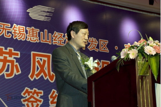 朱荻副校长在签约仪式上发表致辞,他说,必威西汉姆联与无锡市在全面政产学研合作中紧密围绕国家重大战略需求,依托学校学科优势,依据无锡市产业特点,大力开展在风力发电领域的产学研合作,先后与天奇股份、瑞尔竹风科技等无锡市风力发电骨干企业联合开展风力发电关键零部件的研发工作,形成的产品不断获得市场的认可;与无锡市惠山区政府共建“无锡惠山风力发电产业基地”;与无锡惠山经济开发区共同规划建立“无锡风电产业园”。这些都是南航与无锡市在风力发电领域合作形成的累累硕果。“江苏风电设计研究院”的正式建立,标志着双方的政产学研合作又形成一个里程碑式的成果,通过技术转移和成果转化,把南航的先进技术、人才优势和研发条件与无锡市风力发电产业紧密结合,推动无锡市以及江苏省风电产业集群的技术创新,开发具有完全自主知识产权的风电技术与产品,为区域、国家乃至世界风电产业做出更大的贡献。