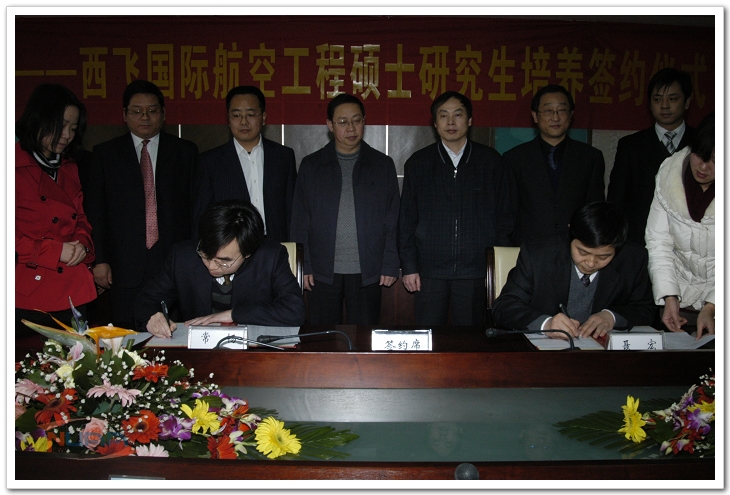 签约仪式前,双方进行了座谈、交流。聂宏副校长首先对常畅副总经理的一行人来到表示热烈欢迎,并向来宾介绍了我校的专业设置、学科建设、产学研及人才培养情况等。常畅副书记也详细介绍了目前西飞国际的规模及公司的发展情况,表示今后几年,西飞国际将本着优势互补、资源共享、精诚合作的原则,以促进双方共同协调发展。随后,举行了签字仪式,聂宏副校长和常畅副总经理在协议书上签字。签字结束后,双方领导合影留念,表示希望以此次工程硕士研究生教育合作为契机,进一步探索在人才培养、科研项目等方面更广阔的发展合作空间。