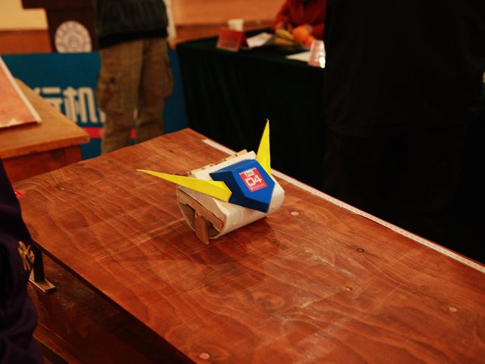 3月29日,场地比赛于晚七时正式开始,历时近三个小时。根据比赛要求选手作品不能使用任何动力装置,仅靠作品自身重力提供动力走下斜面。释放作品时,参赛队员小心翼翼,评委老师和场下观众也都屏息凝神,期待作品精彩的表现。不少作品的出色展示,引来观众的阵阵掌声。展示过后,各队队长需回答评委提出的关于作品及制作思路等方面的问题,回答是否出色也自然成为了评委打分的重要依据。由陈祥雨同学为队长的作品“方舟1号”,更是创下了当晚走完加长斜面仍未停止的最好记录,博得了评委和同学的一致好评。