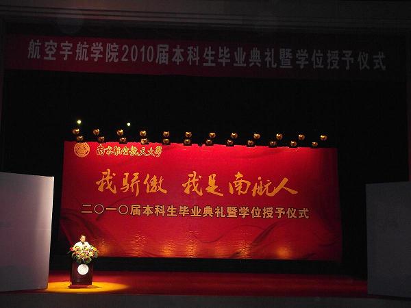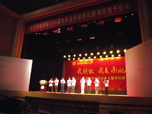 2010年6月23日18:30,我院在明故宫校区新大学生活动中心隆重举行2010届毕业典礼。院长赵宁老师、党委书记李明成老师、副院长朱春玲老师、党委副书记孙占久老师、班主任代表徐锦法老师、薛彩军老师、徐志伟老师、王�老师、毕业班辅导员参加了典礼。毕业典礼由我院2010届毕业生王轶哲主持。