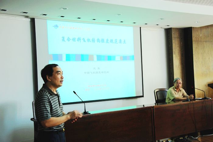 2010年9月21日,应我院陈普会教授邀请,中国飞机强度所沈真研究员来到我院,做了一场题为“复合材料飞机结构强度规范要点介绍”的报告。我院副院长童明波教授主持了报告会,我院飞行器系系主任姚卫星教授、飞行器系乔新教授,陈普会教授、余雄庆教授、曾建江副教授等近200名师生参加了报告会。报告持续近2小时,报告内容包括我国航空复合材料应用发展史,复合材料的性能特点,介绍了复合材料飞机结构有关规范等问题。此次报告会的提问环节也精彩纷呈,学术氛围浓厚,师生们大胆提问,沈真研究员的精彩的回答不时博得阵阵掌声。