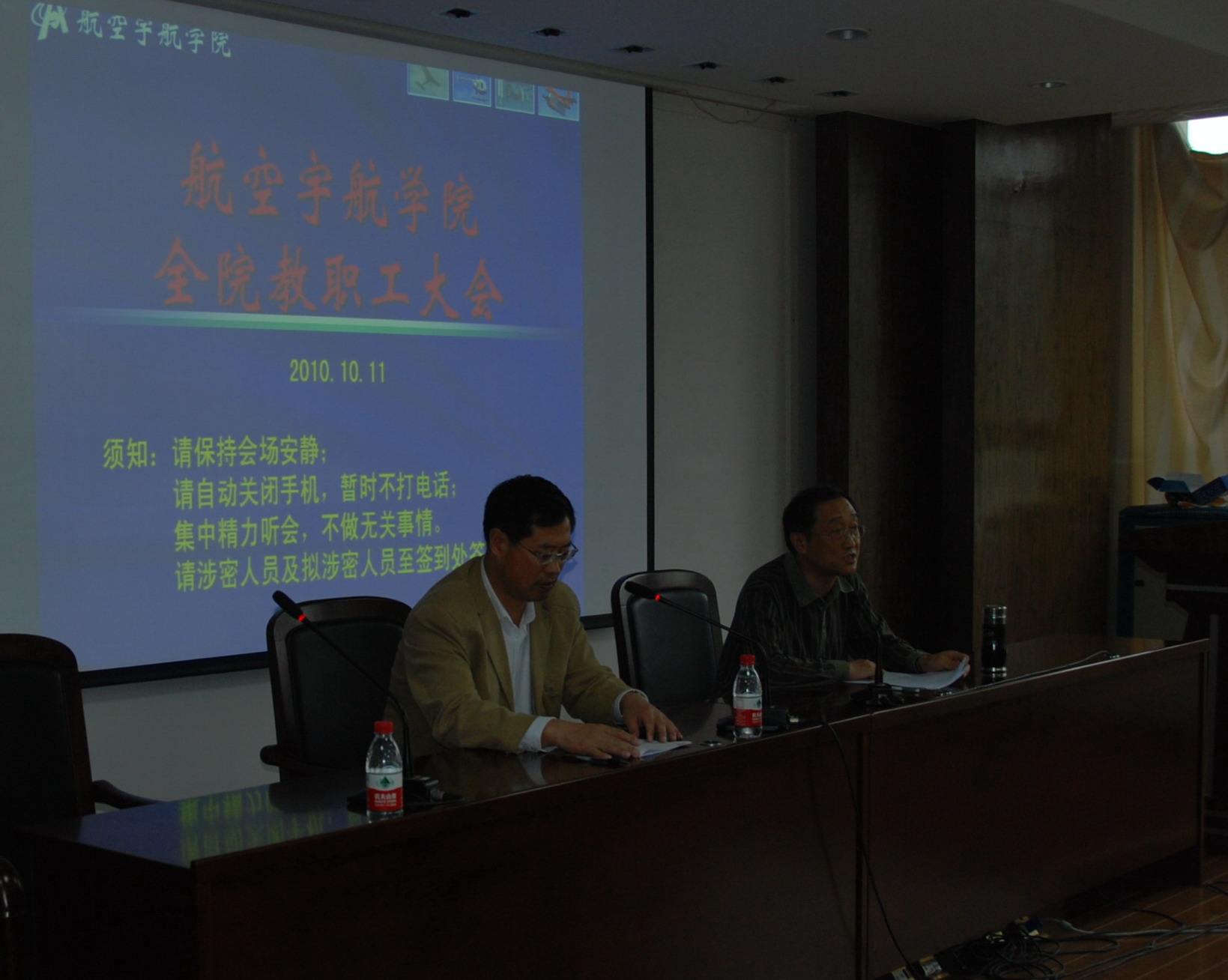 2010年10月11日下午,我院在18号楼529报告厅召开了本学年第一次全院教职工大会,全院教职员工近200人参加了会议。会议由学院党委书记李明成同志主持。