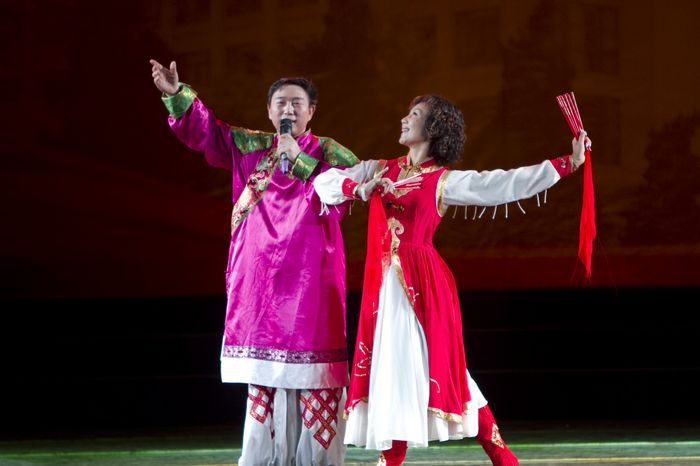 晚会在研究生支部的一曲《中国男儿》中拉开序幕,伴随着屏幕上播放的中国航空发展历程,大家一起重温了党走过的90年风雨历程。随后由院党委书记李明成带领教工支部表演的《红歌联唱》,让在场所有人都见识到了老党员干部的风采。而国防生也用三句半为党的生日献礼,在青春洋溢的街舞《活力青春》后,晚会对学院优秀共产党员和先进党支部进行了党内表彰。此次表彰,既是院党委对大家过去工作的肯定,也是对今后积极上进,更好的为师生服务,履行党员责任和承诺的激励。本次晚会在全国教学名师昂海松教授和国家一级演员杨莉莉教授搭档的“昂莉一号”组合出场后达到高潮,一曲《草原上升起不落的太阳》引爆全场。由学院女教工表演的民族舞《太湖美》为晚会更添一份魅丽色彩。