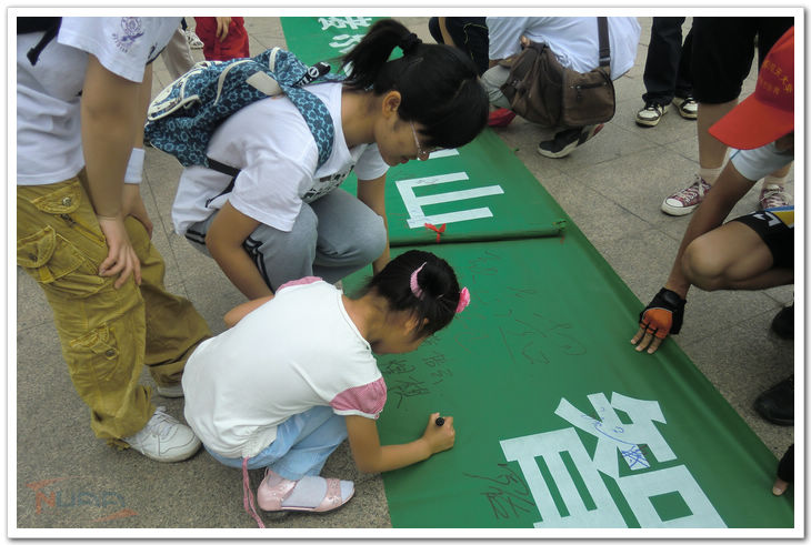 宣传队的队员们从学校将军路校区出发,向北经软件大道―大明路―光华路处(护城河附近)―御道街―明故宫路―北安后街―农场巷―龙蟠路―玄武湖,最后到达紫金山区域。在护城河附近,大家仔细观察了河流受污染程度,向过往行人宣传“保护河流,爱护母亲河从点滴做起”。在紫金山下的白马公园,通过万人签名的方式,呼吁环保,让更多的人投入到环保大军中来。