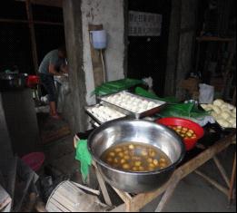 给工地民工做饭的食堂又脏又乱,不断有苍蝇光顾这里,我不禁担心卫生是否达标。不仅环境差,而且所作的饭菜也让人反胃。我亲眼看到了农民工师傅的午餐:馒头+汤。其实,汤也并不是真正意义上的汤,用农民工师傅的话形容他们的汤是“西葫芦不抠籽儿,土豆不打皮儿,捞干了全是泥儿”。(下左图是我偷拍的工地食堂,看来午餐又是馒头和土豆汤了)。晚餐主食是米饭,仅有的一个菜也是很清淡的。至于早餐,则是前一天剩下的热热。过节的时候,好的老板会给农民工师傅们改善一下伙食:杀个猪。我原本以为吃顿肉还是不错的,但是从工人师傅的嘴里得知,他们吃的猪肉像豆腐!原来,一头肥猪的精华都拿去给工地的那些“管事儿的”吃了。轮到农民工的不过是一些肥肉而已。尽管是肥肉,可是民工师傅还是感到很满足。