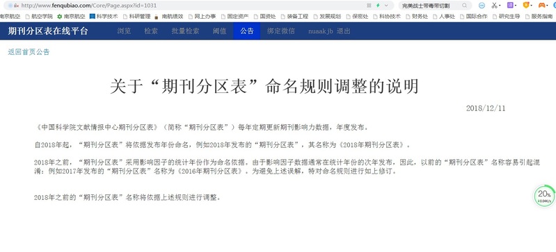 关于在线查询JCR期刊分区情况的通知 & 关于“期刊分区表”命名规则调整的说明 2018.12.11