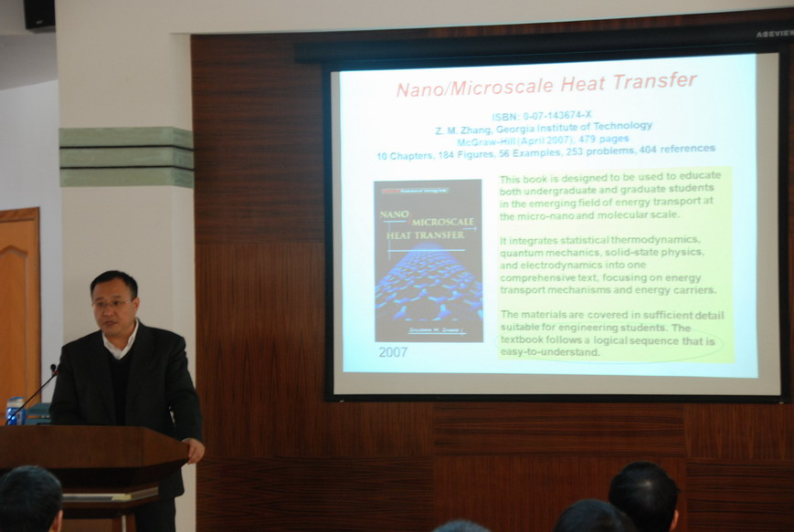 访问期间,张卓敏教授做了题为“Advances in Nano/Microscale Heat Transfer (微纳尺度传热进展)”的学术报告。报告综述了微纳尺度传热的发展历史和研究现状,分析了微纳尺度传热的特性和机理,讨论了微纳尺度传热的热点问题,并介绍了佐治亚理工学院在微纳尺度传热方面的研究成果。报告结束后,现场老师和学生就报告内容进行了积极讨论。张教授还参观了我校人机与环境工程实验室,并与方贤德教授课题组进行了深入座谈。