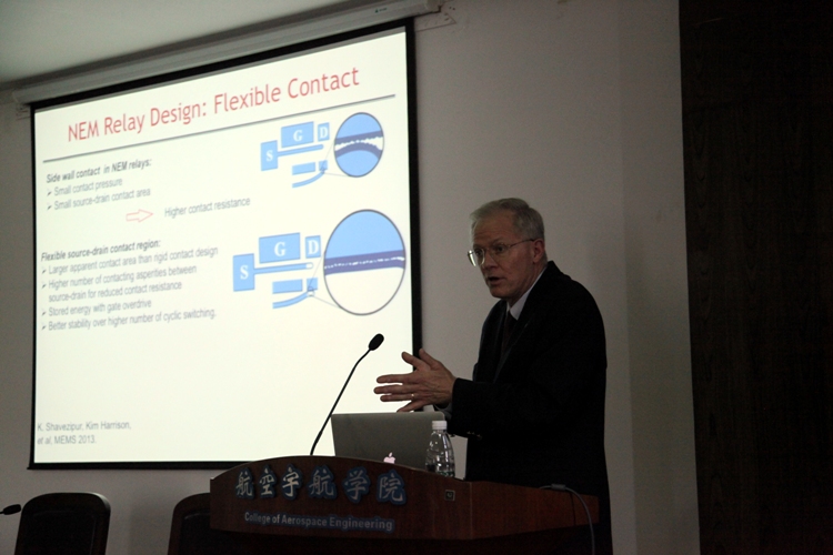 访问期间,做了题为“Electrostatic Nano Electromechanical Switches (NEMS) for Energy-Efficient Digital Systems”的学术报告,介绍了NEMS的最新进展,特别静电驱动在设计NEMS时起到的关键作用。