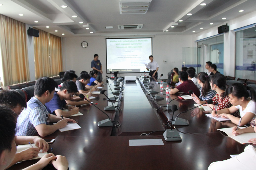 应我校机械结构力学及控制国家重点实验室郭万林教授邀请,美国科罗拉多大学刘奇航副教授于2015年9月17至19日访问了我校,并于9月18日为我校师生做题为“Hidden spin polarization in materials with inversion symmetry: causes and consequences”的学术报告。郭万林教授主持了此次报告。