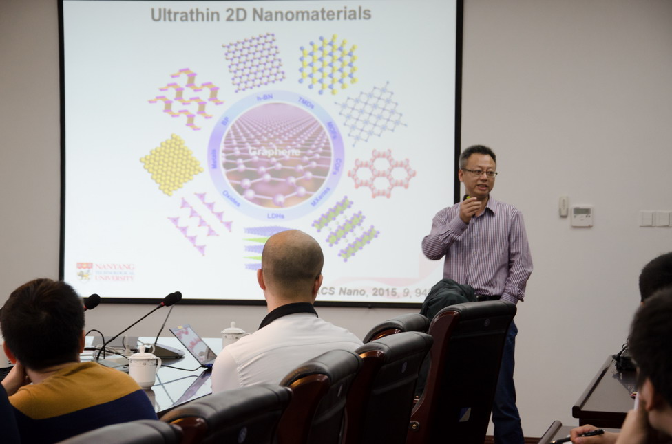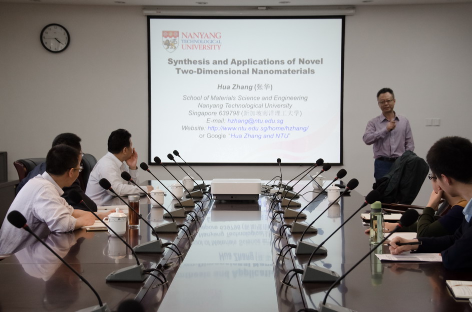 应我校机械结构力学及控制国家重点实验室朱孔军教授邀请,新加坡南洋理工大学材料科学与工程学院张华教授于2016年5月22日至23日访问了我校,并于5月23日为我校师生做题为“Synthesis and Applications of Novel Two-Dimensional Nanomaterials”的学术报告。报告内容丰富、生动、精彩,介绍了新型二维材料的重大研究意义、最新研究成果及未来发展趋势,对我校相关科研工作具有借鉴作用。同时,还结合自己多年的研究经历,讲述了研究生培养与学生、科研工作选题与写作若干问题。朱孔军教授主持了此次报告会。