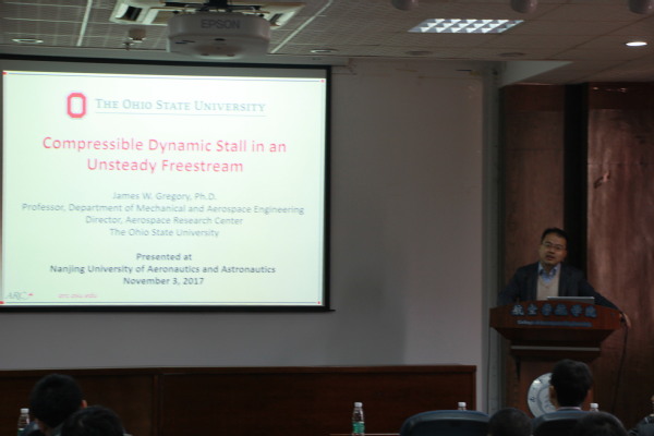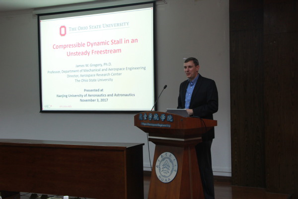 应我校直升机旋翼动力学国家级重点实验室招启军教授邀请,俄亥俄州立大学教授James W. Gregory博士于2017113日至5日访问了我校,并于113日为我校师生做了题为Compressible Dynamic Stall in an Unsteady Freestream的学术报告。报告简要介绍了俄亥俄州立大学及其航空航天系的总体情况,重点阐述了旋翼翼型可压动态失速机理、非定常来流风洞试验装置设计及试验结果等内容。同时,James W. Gregory博士还结合自己多年的研究经历,与现场听众分享了在非定常试验空气动力学与无人机研制与飞行测试方面的研究心得和体会。钱征华副院长主持了报告会。