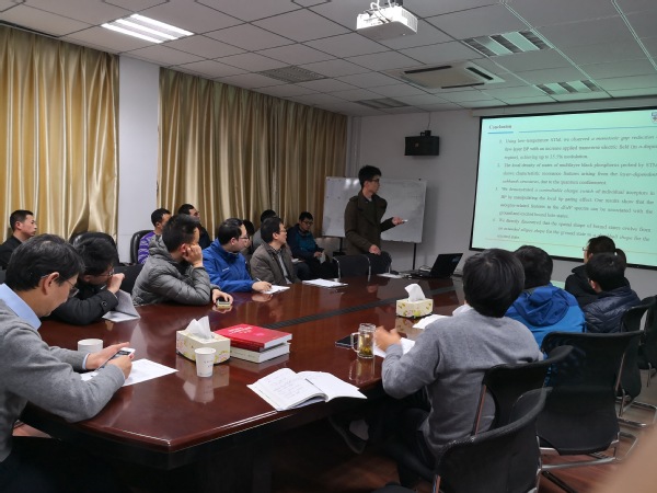 应我校航空宇航学院机械结构力学及控制国家重点实验室郭万林院士邀请,新加坡国立大学刘衍朋博士于2017年12月28日访问了我校,并为我校师生做了题为“Probing the Giant Stark Effect and Bound hole state in Black Phosphorus”的学术报告。报告介绍了黑磷中的巨斯塔克效应和束缚空穴态的探测等内容。报告内容丰富、精彩生动,对我校相关科研工作具有借鉴作用。同时,刘衍朋博士还结合自己多年的研究经历,与现场听众分享了研究心得和体会,郭万林院士主持了报告会。