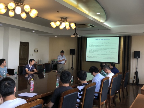 应我校航空宇航学院机械结构力学及控制国家重点实验室钱征华教授邀请,美国加州大学圣地亚哥分校结构工程系首席教授兼极端事件研究中心主任J. S. Chen教授及厦门大学土木工程系、国家优青王东东教授于2018年8月23日访问了我校,并分别为我校师生做了题为“Implicit Gradient for Numerical Solution of PDEs”及“结构超收敛振动分析”的学术报告。Chen教授主要讲述了隐式梯度(IG)可以表示为无显式导数的、且梯度一致的嵌入式积分方程。在PDEs的数值求解中,隐式梯度通过强、弱形式构造导函数的近似表达式,并提供了一种范式。其中,IG可以直接应用于处理不适定问题的梯度正则化(如局部应变问题)。IG 也能用于控制对流主导问题的稳定性,以及节点积分Galeikin方程的稳定性。IG无需参考近似函数的表达式,也能为PDEs数值求解中的无网格法,提供高效的数值计算。王教授详述了一维高阶质量矩阵的积分点型广义构造方法和结构振动问题的超收敛等几何分析方法,并通过缩减带宽矩阵的概念发展了对应的高阶质量矩阵。J. S. Chen教授、王东东教授还分享了他们在有限元数值计算收敛性和高效性,以及无网格数值方法等研究领域的心得和体会。报告内容丰富、生动、非常精彩,对我校相关科研工作起到重要的借鉴和启发作用。钱征华教授主持了报告会。