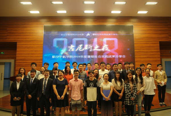 9月26日晚,航空宇航学院2018年“吉尼斯之夜”暑期社会实践成果分享会在将军路校区一号楼四楼报告厅成功落下帷幕。出席本次分享会的嘉宾有校团委副书记丁琛、航空宇航学院党委副书记许静、校团委吕晶淼、航空宇航学院团委书记韩楚、各年级辅导员。30名大众评审及400余名大一新生亦参加了本次活动。