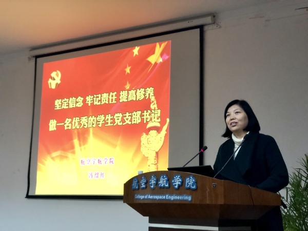 为全面提升党支部组织力,强化党支部政治功能,发挥党支部战斗堡垒作用,航空宇航学院以“重视党支部,善抓党支部”为工作出发点,开展了“三提升”基层党支部书记系列培训。11月22日,航空宇航学院首期学生党支部书记专题培训在明故宫校区18号楼举行,学院党委书记冯绍红、党委副书记许静、专职组织员任盈盈、全体辅导员、学生党支部书记参与培训,专题培训由许静主持。