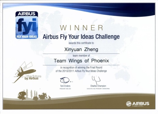2011年,本科生“凤凰之翼”团队设计的“喷气客机的尾流利用”荣获第二届空中客车FYI全球大学生航空创意竞赛全球总冠军,成为我国迄今为止获得该国际竞赛冠军的唯一团队。这是在全球12万多初赛者、75个国家2600多名大学生组成的315支决赛队的激烈竞争中获得的总冠军。