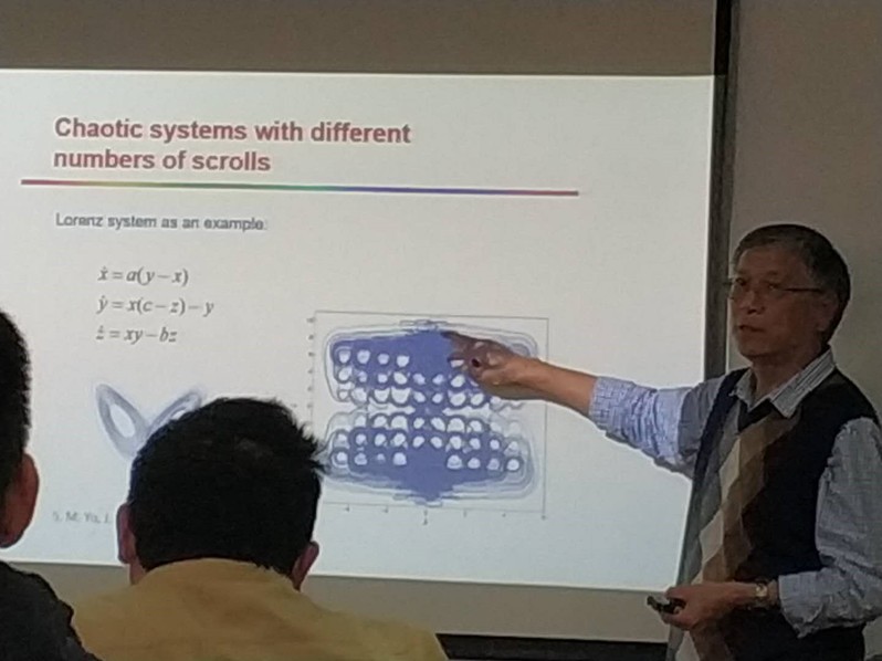 应我校Betway体育西汉姆联机械结构力学及控制国家重点实验室刘先斌教授的邀请,香港城市大学陈关荣教授于2019年4月26日访问了我校,并做了题为“Further on Equilibria and Attractors of 3D Chaotic Systems ”的学术报告。报告详细介绍了陈关荣教授在混沌动力学的研究成果和最新进展。混沌动力系统具有十分复杂的动力学行为,其极限集必须具有:对初值的敏感性,拓扑传递性和周其轨道在极限集中稠密三个特质,然而要成功地验证这些性质并发现混沌吸引子精巧的结构是一件十分困难的工作!陈关荣教授介绍了他们使用简洁的数学变换和数值方法发现多个甚至是无限个混沌吸引子的研究,并且所发现的混沌吸引子可以具有非常优美的对称结构。报告内容丰富、精彩生动,对我校相关的非线性动力学研究工作具有借鉴和指导意义。刘先斌教授主持了报告会。