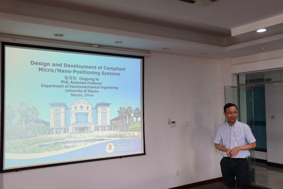 应我校Betway体育西汉姆联机械结构力学及控制国家重点实验室杨颖教授、王亮博士的邀请,澳门大学科学技术学院智能微纳系统实验室主任徐青松教授于2019年6月21日访问了我校,并于6月21日下午做了题为“柔性微纳定位系统的设计与研发”的学术报告。