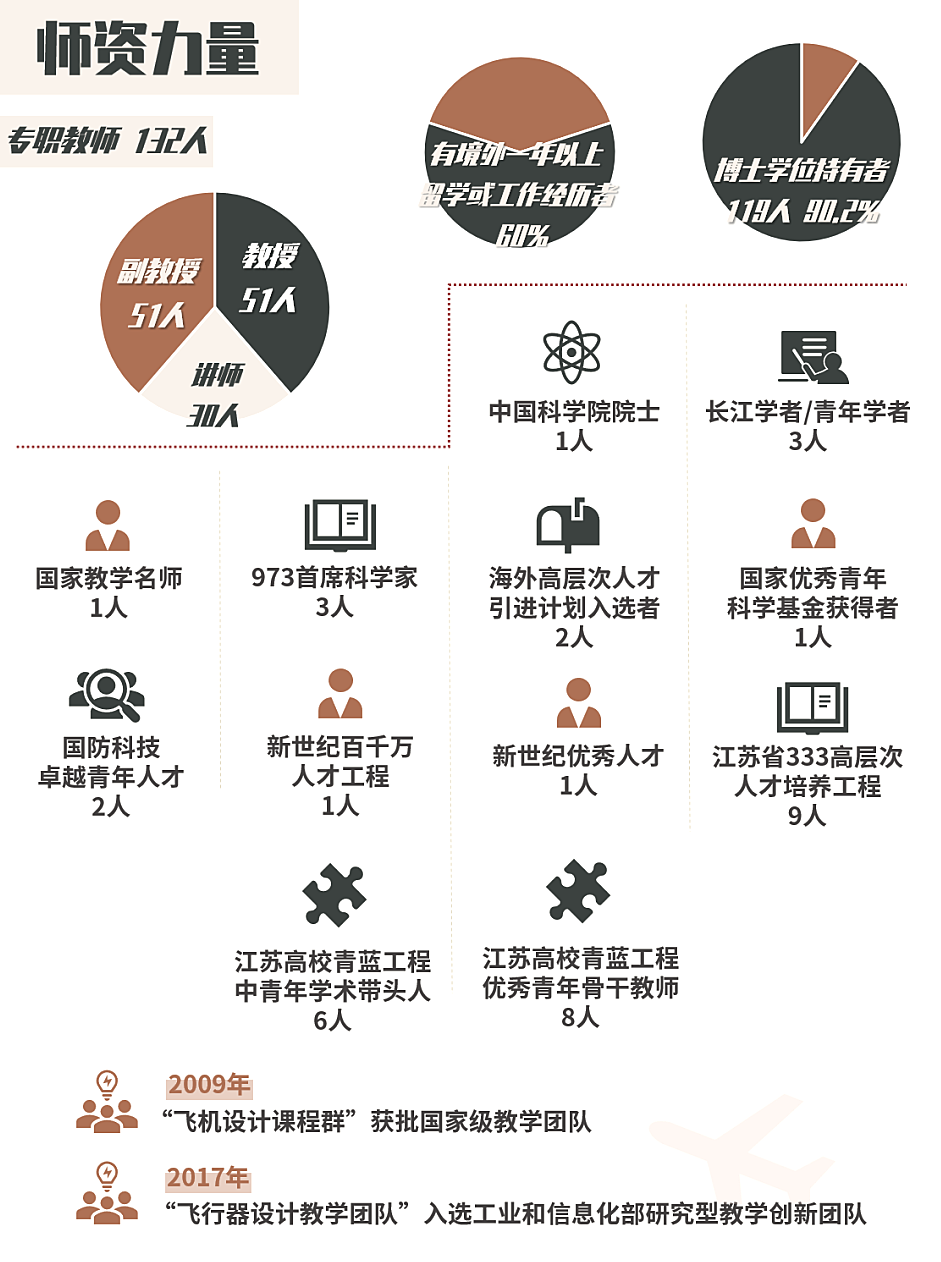 (2) 持续加强师资队伍建设:大力引进高水平教师,选派教师到世界著名大学访问和合作研究;与飞行器设计研究院所建立更紧密的联系,选派教师参与重大型号设计,提升教师工程能力;对所有专业课程建立课程组,对青年教师传帮带,提高青年教师教学能力;开展创新教学研究,提升4个教学创新团队的水平。