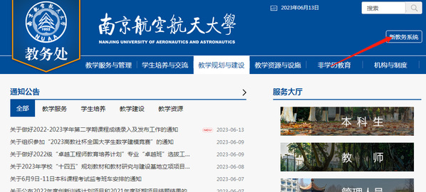 任课教师以本人帐号(工号)、密码登陆教务处网站的新教务系统,网址http://aao-eas.nuaa.edu.cn/eams/。