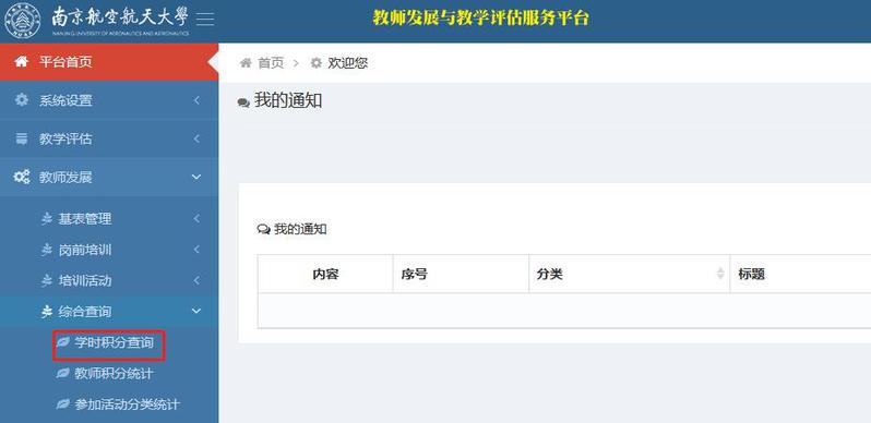 1.修读查询:参训教师登录“教发培训服务平台”(http://nwp.nuaa.edu.cn)-“教师发展”-“综合查询”-“学时积分查询”即可查询个人课程修读情况。