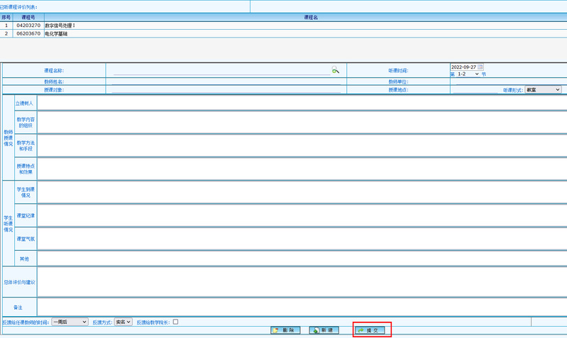2.必修课:参加2023年暑期教师企业“项目式”工程实践可抵新教师校本培训必修课集训1次。若教学观摩次数未达标,可参照“2022年新教师教学观摩课列表”在学校教务系统查询课表后前往现场观摩听课,听课完成后务必在“教发培训服务平台”-“教学评估”-“评估课程”-“自主听课”上进行登记才会有学习记录。