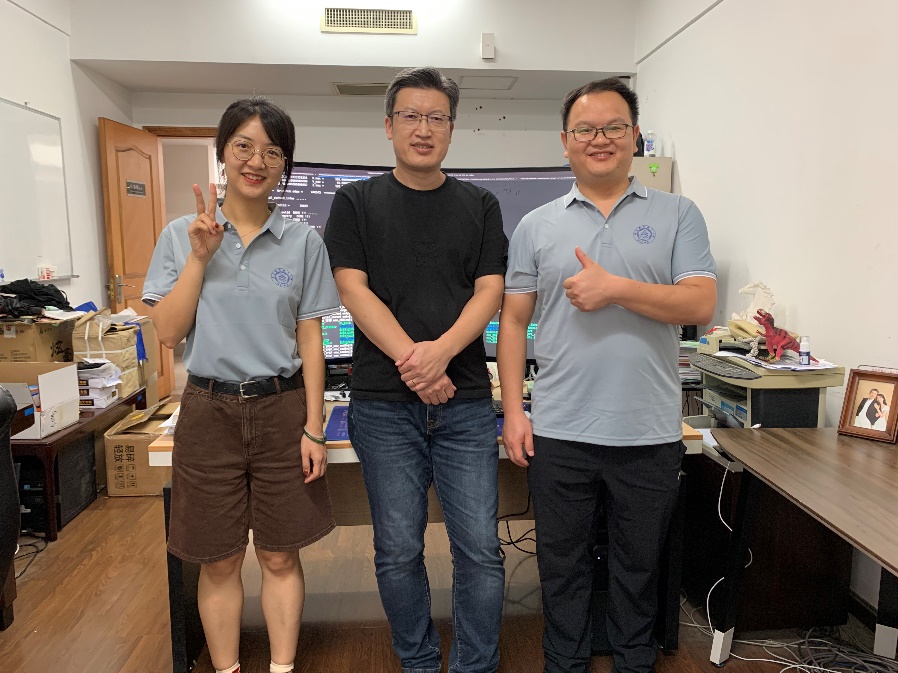 溜达校园参观校史馆。他们去拜访了他们的老师吕宏强教授。国庆期间,吕老师正在加班,同学们饶有兴致的全角度欣赏了一下吕老师正在调试算法的电脑大屏幕。仿佛回到了吕老师给他们上专业课的时候。