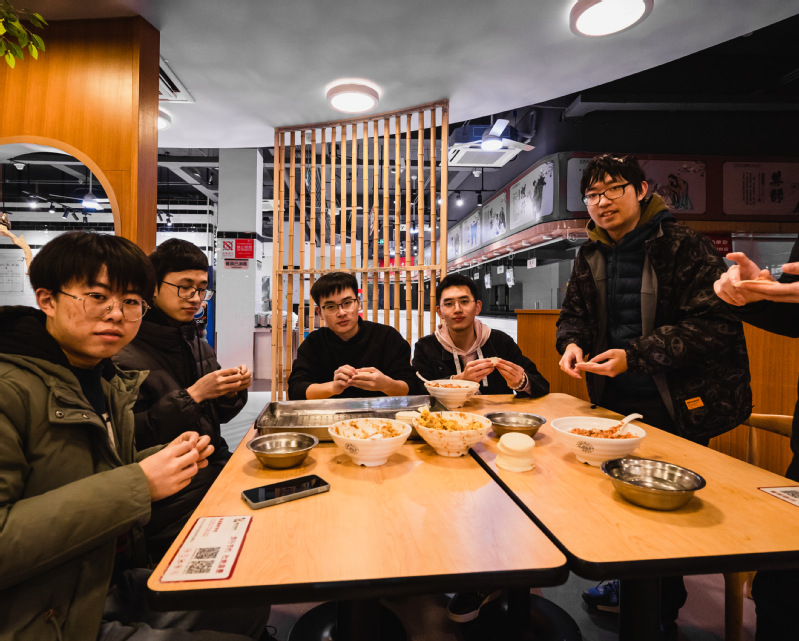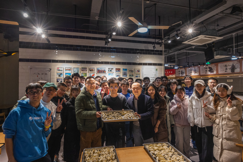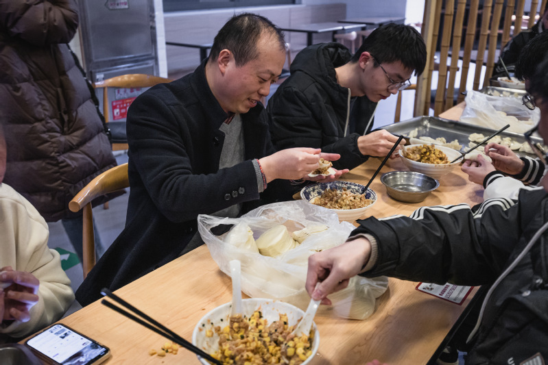 师生们相对而坐,一边包饺子、吃饺子,一边聊着近期的学习和生活。以物传情,饺子成为了连接老师与学生,学生与学生之间美好感情的纽带。