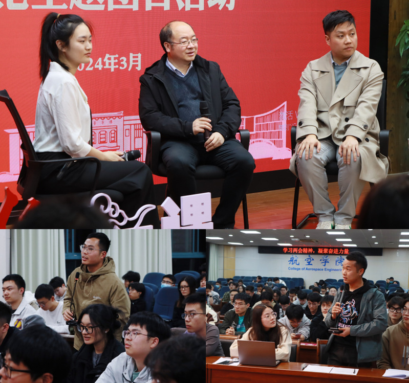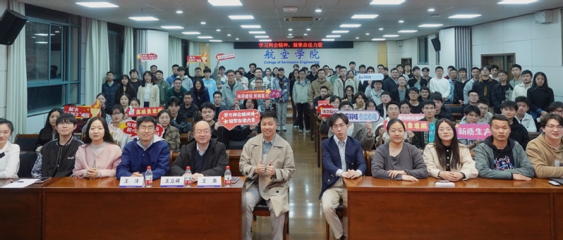 两位老师参与两会期间的经历与感悟令人振奋,现场同学们也分享了各自的收获和启发。他们表示,新一年国家发展的宏伟蓝图已经绘就,青年学生应积极参与其中,努力提升自身能力水平,立志做有理想、敢担当、能吃苦、肯奋斗的新时代好青年,为全面建设社会主义现代化国家、全面推进中华民族伟大复兴贡献更多南航青年的力量。