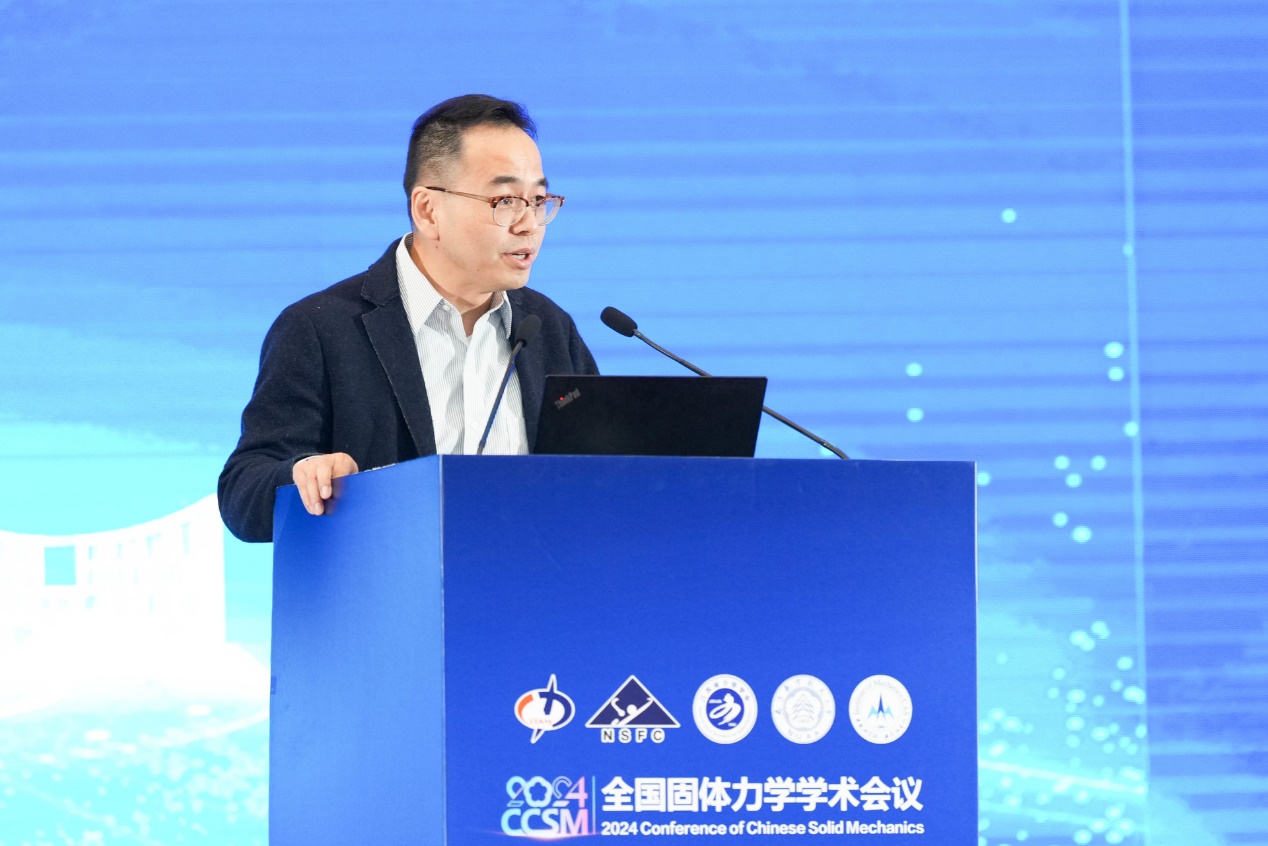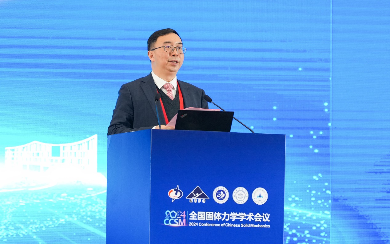 郑晓静代表中国力学学会对参会院士、领导和嘉宾表示热烈欢迎。她表示,固体力学在我国土木、航空航天、机械造船等多个领域都发挥着至关重要的作用。期待固体力学领域的专家学者能紧密围绕国家需求,瞄准与各行业密切相关的共性科学问题和技术挑战,开展协同攻关。同时,她还呼吁注重开展科普工作,进一步提升我国固体力学学科的国际影响力,推动学科发展不断迈向新的高峰。