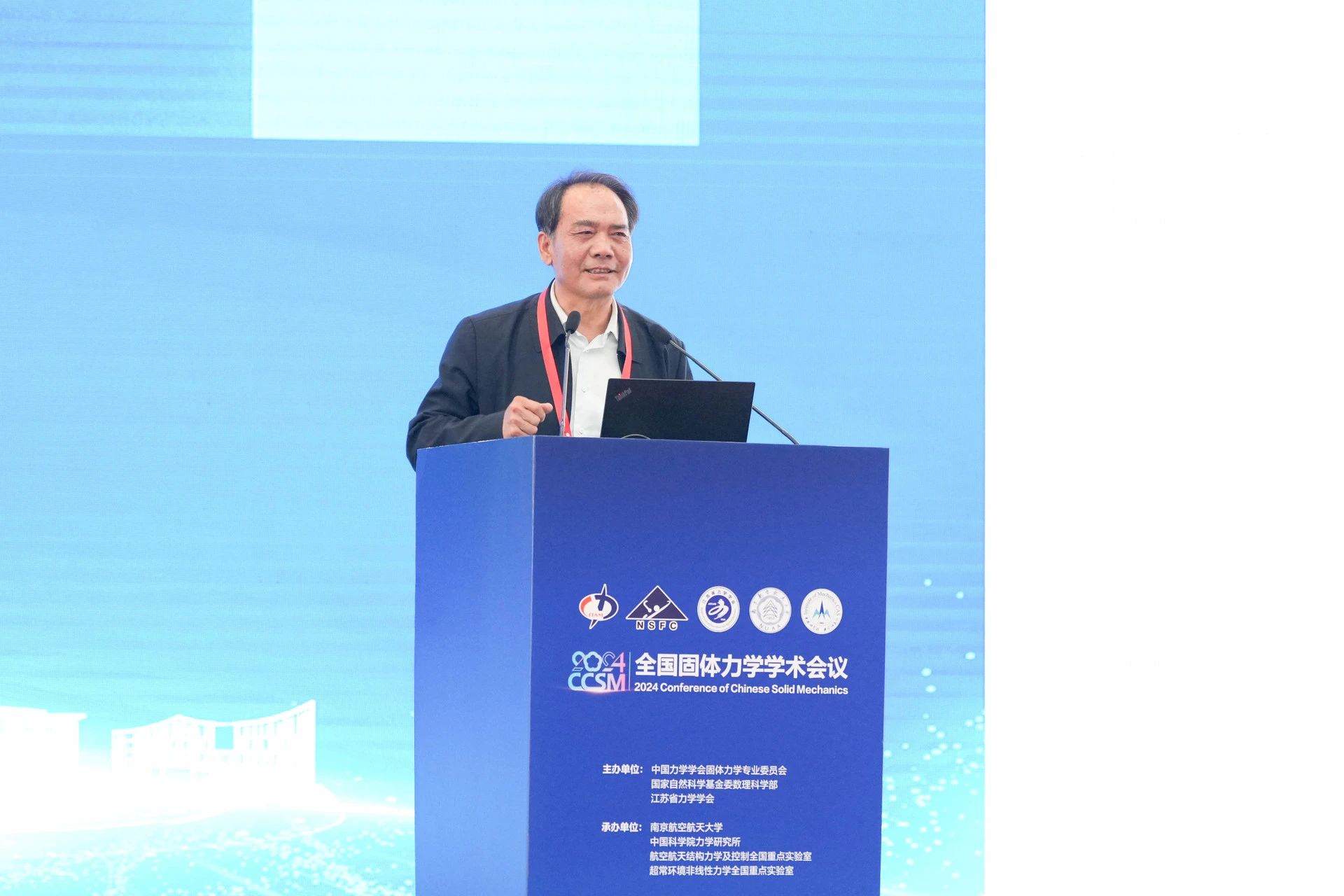 开幕式最后,大会主席郭万林代表组委会介绍了会议筹备情况。他同时也希望固体力学学科的科研人员能够紧密结合国家重大需求,通过理论创新、技术攻关及工程应用等方面的努力,为国家科技创新提供坚实支撑。