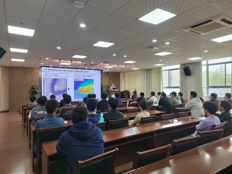 针对宽速域、大空域飞行需求面临的挑战,报告介绍了他们团队近年来的研究进展:一方面,针对高超声速跨流域特性,发展了适合全流域的统一随机粒子(USP)方法,突破传统粒子方法的时空步长限制,并开发了相应的开源计算软件,植入了多原子分子内能模型、时空步长自适应技术等,可高效模拟多尺度非平衡流动。另一方面,针对高超声速条件下气固相互作用的复杂过程,从微观的分子动力学出发,发展了介观的气固相互作用模型,并推导出宏观的滑移边界条件,搭建了从微观到宏观的桥架。同时,结合机器学习的相关算法,提出了从微观分子模拟到宏观控制方程的数据驱动模式,可用于非平衡条件下的本构关系和宏观方程预测,显著提升了宏观方程描述非平衡特征的能力。报告内容丰富、精彩生动,对我校相关科研工作具有借鉴作用。同时,张俊教授还结合自己多年的研究经历,与现场听众分享了研究心得和体会。