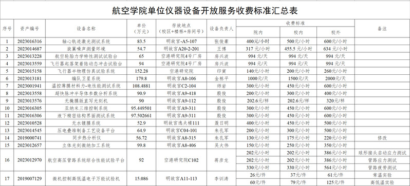 根据《必威西汉姆联大型仪器设备共享经费管理细则》,“智能旋翼主动控制实验系统”等18台(套)设备的收费标准公示如下: