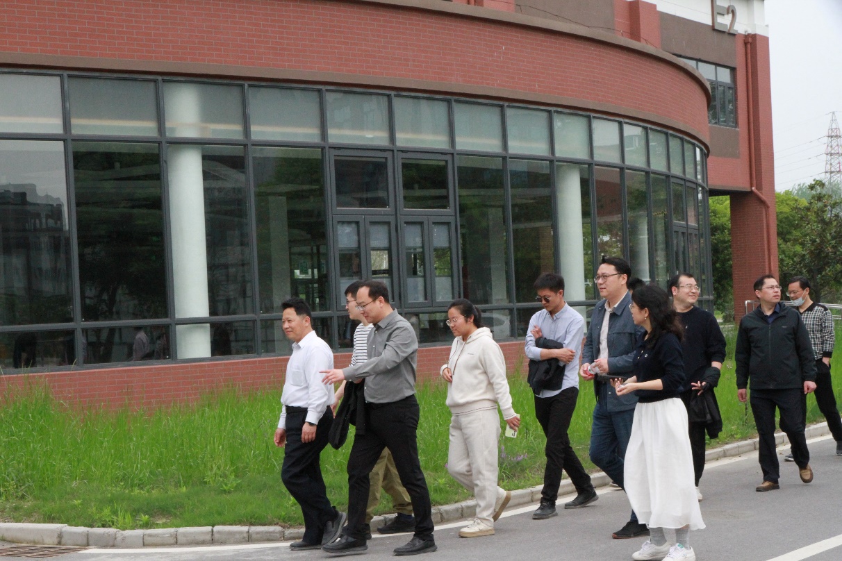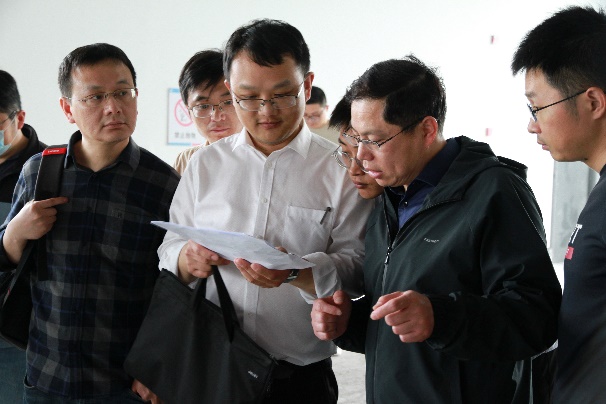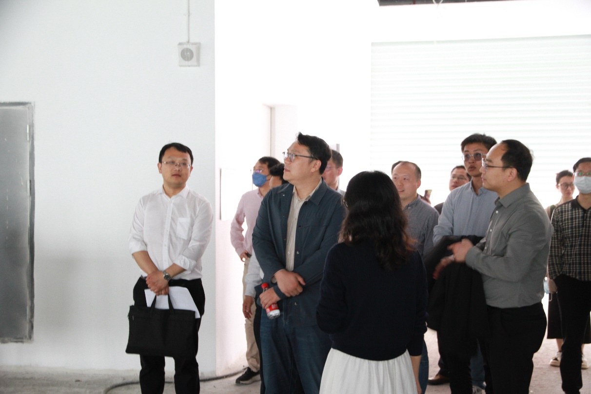 在国际创新港建设管理办公室副主任徐永利、六合高新区负责同志等人的陪同下,董昊一行首先参观了创新港B4栋楼,并就学院拟入驻的实验室功能区域划分、地面承重、电气负荷以及设备入驻流程等事项进行了现场交流。