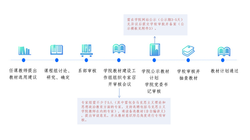 各学院须建立教材选用审核机制,所选教材应具有正确的政治方向和价值导向,遵循教材“选优用新”的原则,优先选用各级规划的优秀教材和近三年出版的教材。