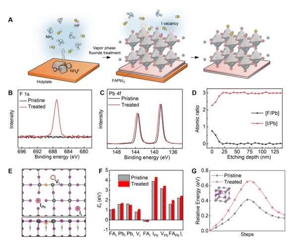 该研究结果提供了一种面向大面积太阳能模组的气相氟化处理方法,为获得均匀且稳定的大面积钙钛矿薄膜,以用于实现能满足商业化要求的太阳能模组和器件打下了坚实基础,加快了钙钛矿太阳能电池从实验室研究到商业化应用转变的进程。