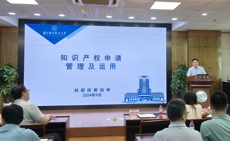 科研服务中心郭剑坤老师重点讲解了学校知识产权工作概况、专利申请及管理、知识产权信息利用和专利奖申报的具体流程,着重指出了推动知识产权作为新质生产力在提高国际竞争优势中的关键位置。