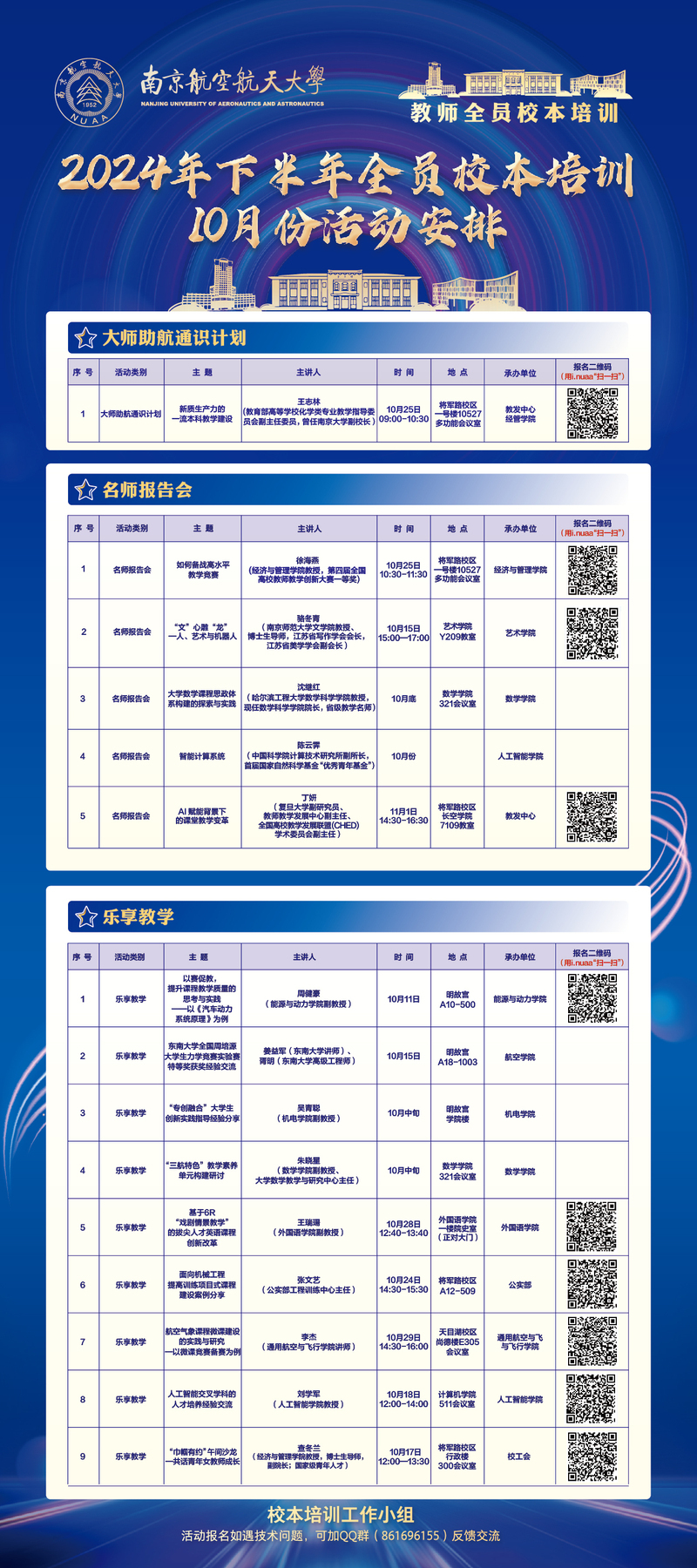 2024年下半年教师全员校本培训10月份活动安排