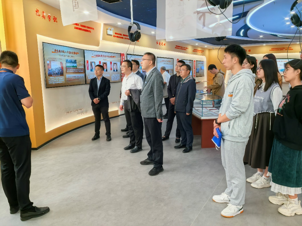 在二期馆内,师生共同感受声光电交互带来的沉浸式体验,学习了张阿周、杨岞生、戴昌辉、王适存等先生“学为人师,行为世范”崇高品德,一个个师生从游的生动故事,再现了老一辈南航师者为学校建设,为共和国航空领域的科技进步、学科发展和人才培养做出的巨大贡献,激励着教师深入践行教育家精神,潜心教书育人、培根铸魂,教育引导学生尊师重教,树牢“航空报国”的远大志向,共同为强国建设、民族复兴努力奋斗。